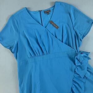 NWT The Limited Short Sleeve Surplice Ruffle Blue Midi Dress