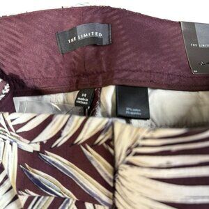 These NWT The Limited Size 14R Tailored shorts are a stylish addition to any woman's wardrobe. Made of a comfortable blend of spandex and cotton, these maroon greenery chino shorts feature a regular fit and a 5-inch inseam. With functional pockets and a classic design, these shorts are perfect for any casual or dressed-up occasion.