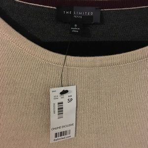 Brand new with tags The Limited sweater dress. Colors: cream and black on front and black and grey on the back. Cute button detail on the right side of the dress. Size Small Petite