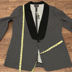 Gorgeous Dress Blazer! It’s hard to show in pictures, but the design has tiny metallic gold dots in the middle of each white dot
