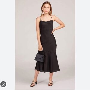 Your favorite uncomplicated slip dress. Developed with a subtle cowl neckline, delicate crossover straps, and a flared hemline.