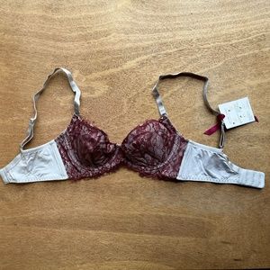 NWT The Little Bra Company TLBC Shopbop Hilary 30B Gray Bra Red Lace No Padding