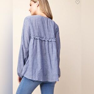 NWT The Marleen Striped Cotton Ruffle Blouse