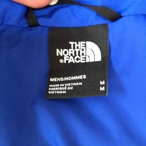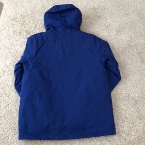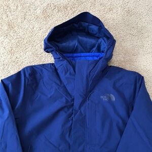 New! The North Face men’s size medium blue carto three in one insulated jacket with attached hood. Zippered and great for harsh winter weather. The color is more navy on top.