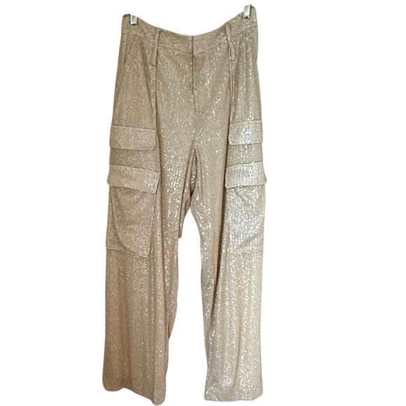 NWT The Noli Shop Sequin Cargo Pant - Pearl