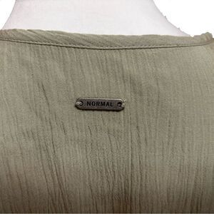 Keywords: Sage green cutout dress, long sleeve dress, V-neck drawstring dress, soft crepe fabric, stylish casual dress, The Normal Brand, NWT