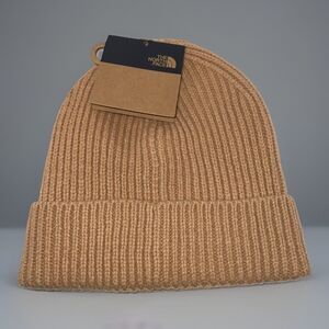 NWT The North Face TNF Box Logo Cuffed Beanie Almond Butter OS