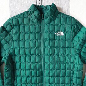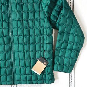 The North Face Thermoball Insulated Jacket in a men's large. Brand new with tags, this is a lightweight, packable, and warm jacket with a quilted pattern, and synthetic insulation. This has two zippered hand pockets, and is in the Deep Nori Green color.