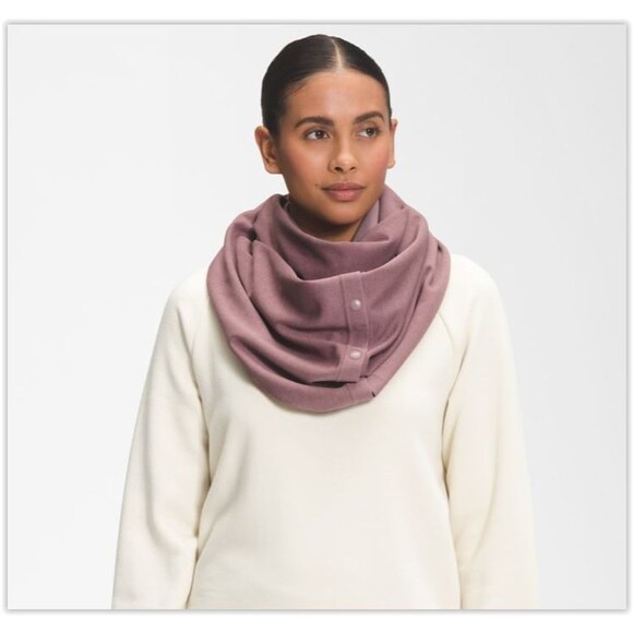 NWT The North Face logo SUPINE SCARF with snaps, TWILIGHT MAUVE HEATHER