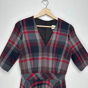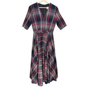 NWT The Pretty Dress Company Myla Tartan Plaid Midi Dress | Red Gray | SZ 8