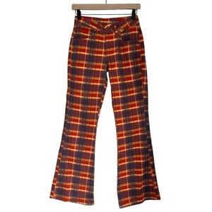 The Ragged Priest register flare jeans in a red checkered pattern in yellow, red, orange and blue colors. Size 24.