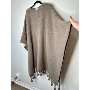 NWT The Row Follain Fringe Poncho in Fawn Melange Wool Cashmere Pullover Sweater