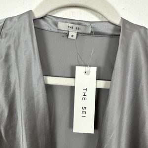 NWT The Sei Platinum Raglan-Sleeve Silk Wrap Bodysuit Size 0