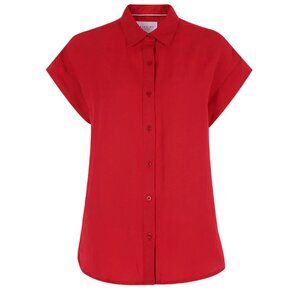 NWT The Shirt by Rochelle Behrens Short Sleeved Boyfriend Shirt in Persimmon.