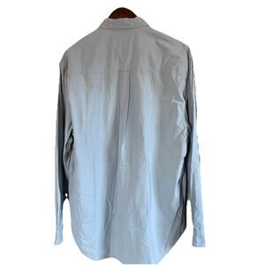 This new Territory Ahead light blue long sleeve button up men's shirt in size large is a classic and versatile piece perfect for various occasions such as parties, casual outings, or business meetings. Made from100% cotton with a solid pattern, this shirt features a collared neckline, button closure, and a relaxed fit, making it comfortable and stylish. The woven fabric design adds a touch of sophistication, while the inclusion of pockets adds functionality. This shirt is easy to care for with its machine washable quality, making it a practical and timeless addition to any man's wardrobe. The chest measures 47 inches and the length is 31.5 inches.