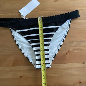 This NWT bikini bottom from The White Company London is perfect for a day at the beach or on a nautical-themed vacation. The classic striped pattern in black and white adds a touch of designer style to your swimwear collection. This bikini bottom comes in size 8 and is sold as a separate piece from the top.