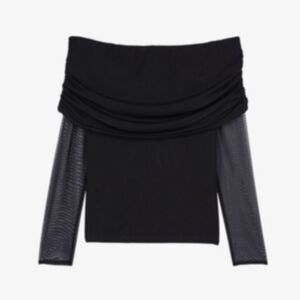 NWT The kooples off shoulders black top with mesh long sleeves Size French 0 (US