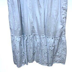 NWT TheGet Solid Light Blue Eyelet Short Sleeves Tiered with Pockets Midi Dress