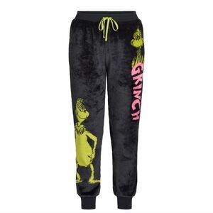 ☔️🩵NWT The Grinch Black & Green Grinch Graphic Plush Joggers Small