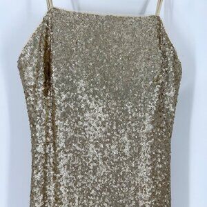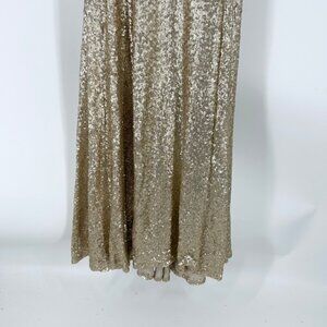 NWT Theia Bridesmaids Gigi Matte Gold Sequins Gown