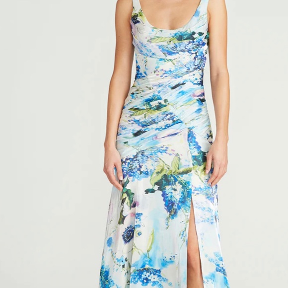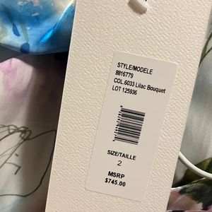 NWT Theia Couture MINA DRAPED LIQUID GOWN Satin Designer Floral Gown Sz 2