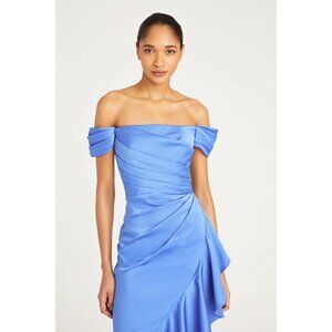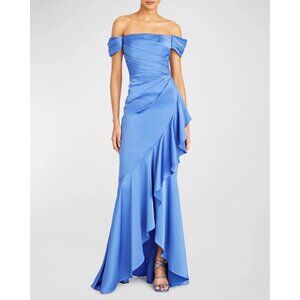 NWT Theia Off-the-Shoulder Ruffled Satin Gown Blue Size 10