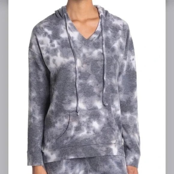 NWT Theo & Spence Women's Black White Tie Dye Hooded Sweatshirt Size S $60 G474