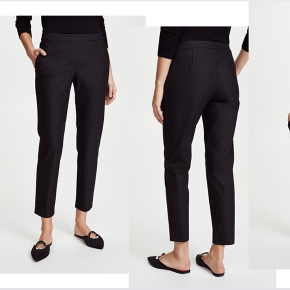 Designed for a mid rise with a slim fit and a tapered leg - cropped length. With their cropped cut and skinny-straight leg, these easy pull-on Theory trousers bring a casual feel and sleek look to your work-to-weekend wardrobe.