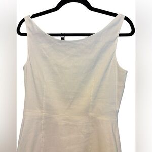 NWT SOLD OUT CURRENT Theory Ballerina Neckline Mini Dress in Good Linen White Eco Crunch Size 4 - Sculpted with a ballerina neckline, this easy fit-and-flare dress fastens along the side with a concealed zip closure. A sleeveless style crafted from lightweight Good Linen enhanced with stretch for easy movement, it’s fully lined for all day comfort. True to size, choose your normal size Fit-and-flare silhouette, sleeveless Above-the-knee length