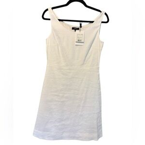NWT Theory Ballerina Neckline Mini Dress in Good Linen White Eco Crunch Size 4