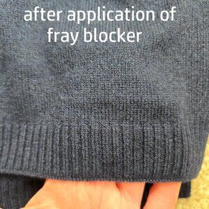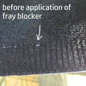 There was a tiny hole just starting at the end where the ribbing meets the body of the scarf. It was just a single stitch. I have applied a fray block product to this spot to prevent the hole from expanding. You can wear and wash the scarf normally. You can't *see* the fray block, but you can feel the spot where it's been applied.