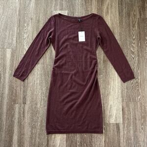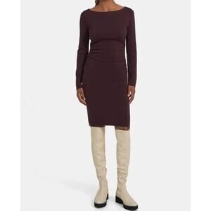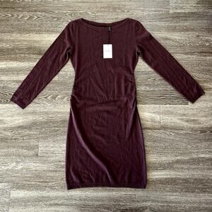 NWT Theory Boatneck Merlot 100% Cashmere Sweater Dress Sz Large Long Sleeve Midi
