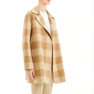 NWT Theory Buffalo Plaid Double Faced Check Overlay Tan Blazer Wool Coat Large
