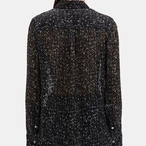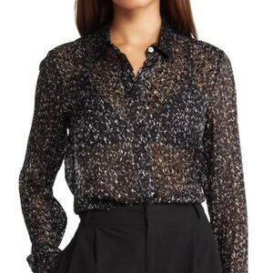 NWT Theory Chevron Burnout Button Silk Viscose Sheer Blouse Top