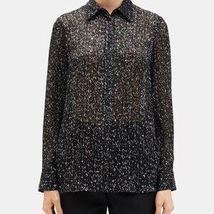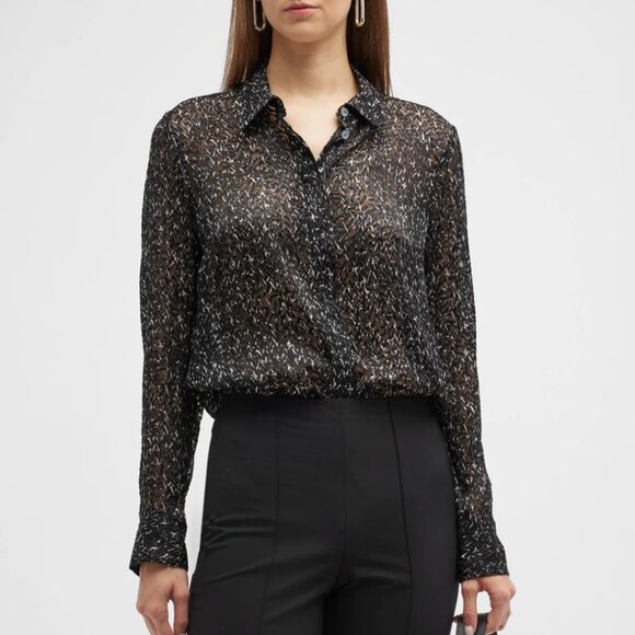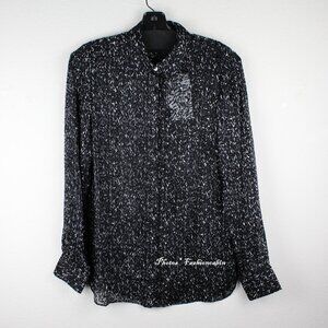 NWT Theory Chevron Burnout Button Silk Viscose Sheer Blouse Top