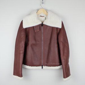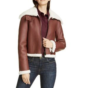 A gift for the woman in your life who deserves everything and more, this waist-skimming moto jacket is crafted of luxuriantly cozy Spanish shearling. The oversized collar can be buckled up to warm the neck.