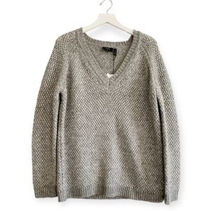 NWT Theory Gray Slouchy V Neck Textured Sweater, Size M