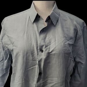 NWT Theory Irving Mens Gray Button-Up Shirt. Stylish gray button-up linen shirt with long sleeves. Perfect for casual or formal occasions. Size medium. Smoke free home.