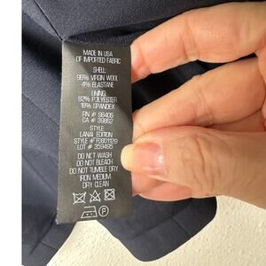 Clean open-front silhouette with notched neckline and welt pockets. Shell 96% virgin wool/4% elastane; lined 82% polyester/18% spandex. Tag: “Lanai Edition,” style F8081129, made in USA of imported fabric. Wear for work, events, or tailored layering; hip-length, modern cropped feel. Care: dry clean; medium iron per label.