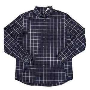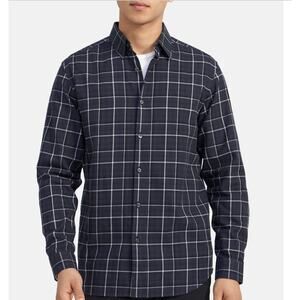 NWT Theory Men's Navy Irving Multi Standard-Fit Shirt in Ombré Grid Cotton - L