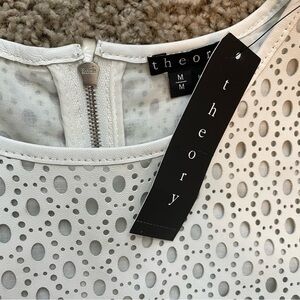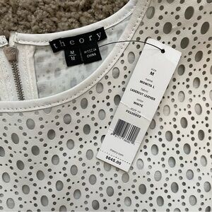 NWT Theory Mowita Lasercut Lamb Leather White Ivory Sleeveless Top sz M