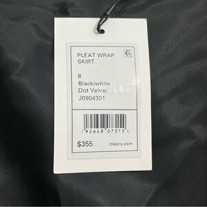 NWT Theory Pleat Wrap Skirt in Black Dot Velvet Women’s Size 8