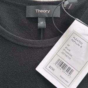 New with tags, never worn. Purchased from Theory store, black pleated peplum top. Stretchy, thin sweater type material. Size medium. Bought for the office and I work remote now! Smoke free home. Originally $295.