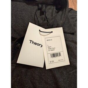 NWT Theory Polo Shirt Mens Large Black Atlas Pique Casual Preppy Golf Classic