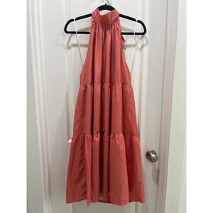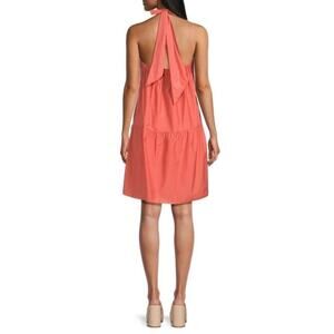 NWT Theory Tiered Halter Neck Mini Dress in Pink Coral Sz L