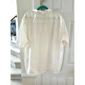 Excellent NWT condition. Semi sheer, lightweight white linen. Collared, button down, short sleeve.