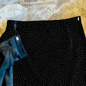 NWT Theory Womens Black Polka Dot Silk Velvet Pleat Wrap Work Skirt Sz 4