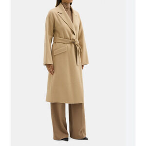 NWT Theory Wool & Cashmere Oversize Robe Wrap Long Coat Size P Beige #3F511