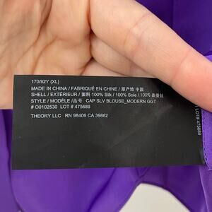 NWT Theory XL Cap Sleeve Blouse Top 100% Silk Georgette Bright Peony Purple. No flaws to note.