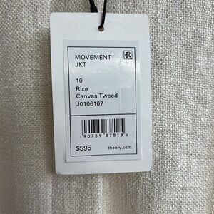 The Movement Jacket is a collarless peplum jacket with a crew neck and covered metal zip closure. Designed with princess seams for a flattering fit, this jacket is made of an Italian viscose and cotton blend tweed with a mock canvas surface and raw-edge finish.